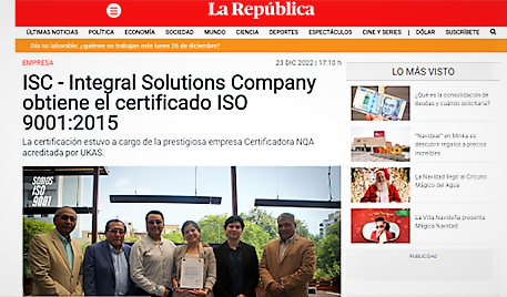 Felicitaciones a ISC – Integral Solutions Company por haber obtenido la certificación internacional ISO 9001:2015, con el gran apoyo de PROINNOVATE de Perú. ISC es una empresa dedicada a la fabricación y montaje de estructuras y sistemas metalmecánicos, obras civiles, servicios generales industriales y afines.ISC es una empresa más de las muchas que han depositado